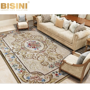 Estilo francês Villa Bege Handmade Floral Área Tapete e Tapetes Alta Pilha Mão Tufted Thick Lã Resistência ao Desgaste Esculpido Design