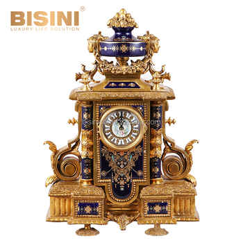 Relógio de mesa europeu de luxo antigo, feita de porcelana azul royal e bronze de ouro
