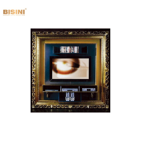 フレンチヴィラのリビングルーム木製ゴールドリーフ長方形テレビフレームキャビネットヨーロッパのユニークなデザイン3Dゴールドホイルホームシネマウォールラック