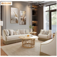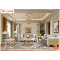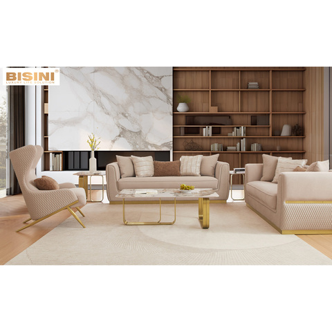 リビングルームソファセットヨーロピアンスタイルゴールデン304ステンレスフレーム生地布張り