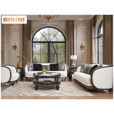 2026ヨーロッパのレトロなリビングルーム家具セットソリッドウッド黒クルミゴールデンアクセントホワイト生地室内装飾用ソファ