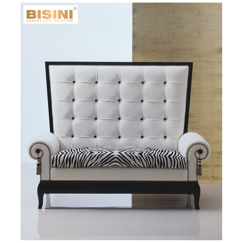 フレンチホットセールチェスターフィールド耐久イベントチェア2人乗りウェディングソファセット白とゼブラ生地木製リビングルーム家具