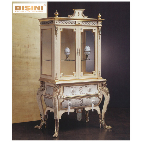 豪華なバロック木製手作り彫刻リビングルーム展示キャビネット2ドアワインキャビネット革挿入ショーケース付き