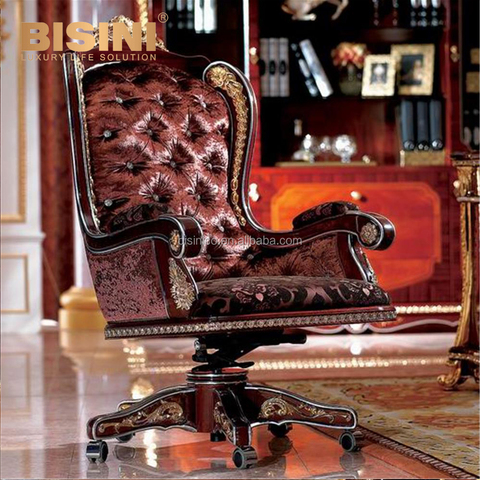 เกียรติยศบาร็อคออกแบบบ้านสำนักงานหมุนเก้าอี้นวม,24K ทองเฟอร์นิเจอร์หนังแท้เก้าอี้ผู้บริหารไม้